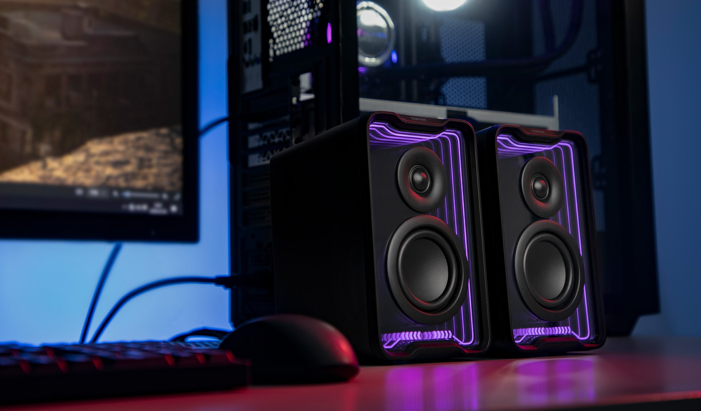- 30W RMS 2.0 Active Speakers delivering clear, balanced sound for everyday desktop use